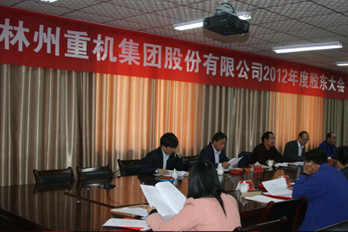 2013年4月16日下午14時(shí),林州重機(jī)集團(tuán)股份有限公司2012年度股東大會(huì)在公司一樓會(huì)議室以現(xiàn)場(chǎng)投票和網(wǎng)絡(luò)投票相結(jié)合的方式召開,參加本次股東大會(huì)的股東及股東代表共24人,代表公司股份328,572,401股,占公司有表決權(quán)股份總數(shù)的61.0356%,其中,現(xiàn)場(chǎng)出席會(huì)議的股東及股東代表14人,代表股份328,309,380 股,占公司有表決權(quán)股份總數(shù)的60.9867%;通過網(wǎng)絡(luò)投票方式參加會(huì)議的股東10人,代表股份263,021股,占公司有表決權(quán)股份總數(shù)的0.0489%。